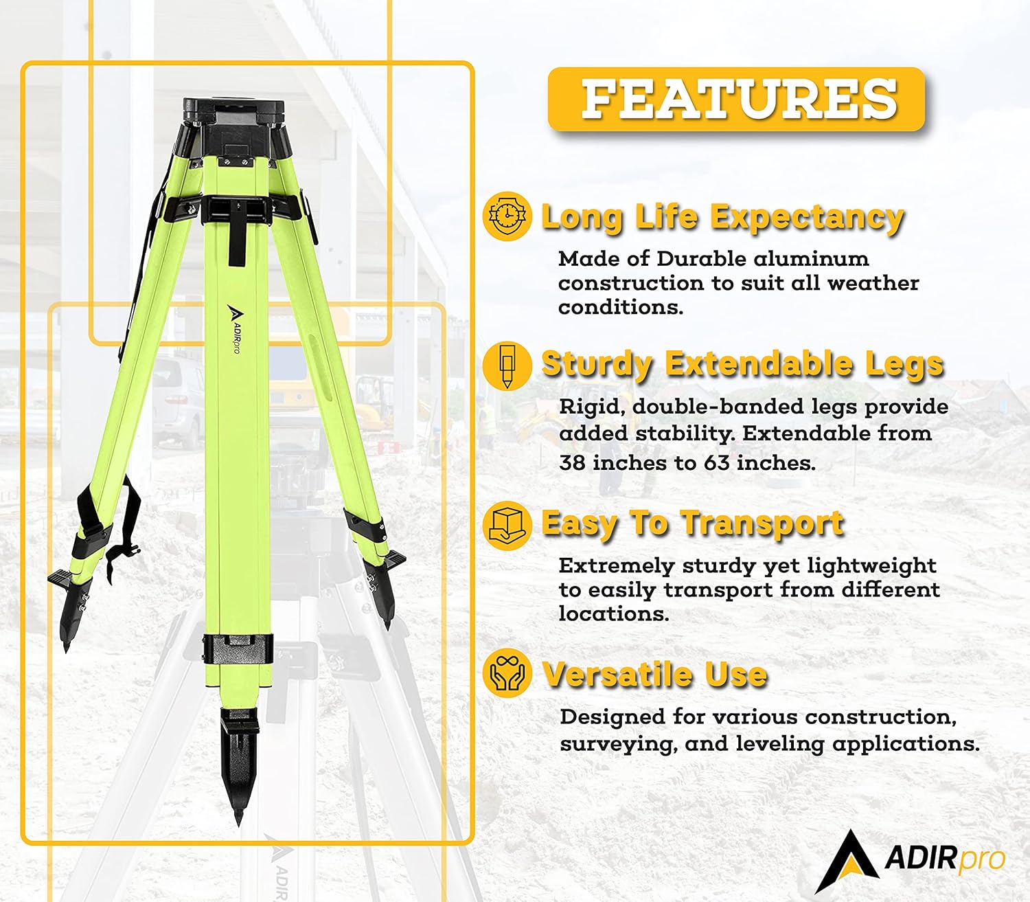 Introducing the AdirPro Universal Survey Tripod, the ultimate tool for all your surveying and leveling needs. This versatile tripod is designed to be compatible with various instruments, including laser levels, transit levels, and more, making it a must-have for contractors and DIY enthusiasts alike.